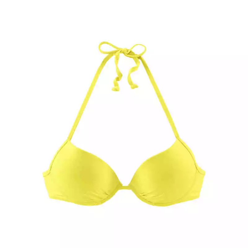 In den angesagten Trendfarben der Saison. Mit wattierten Cups und eingearbeiteten Kissen für ein sexy Dekolleté. Im Nacken zu binden und im Rücken zu schließen. Softe Microfaser-Qualität.