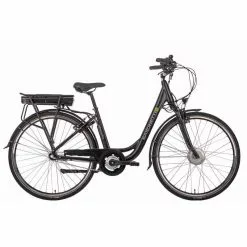 Wartungsarmes, sicheres und einfach zu bedienendes Elektro-Damenfahrrad mit Vorderradmotor und 3 Gängen. Mit diesem E-Bike können Sie gut in der Stadt und auf dem Land, für Pendeln, Schule oder Fahrten in der Umgebung zu tun. In hügeligem Gelände sollten Sie besser einen anderen Typ wählen, aber für normale niederländische Verhältnisse ist dies ein gutes Fahrrad. Die wartungsarme Nabenschaltung schaltet reibungslos, die 3 Unterstützungsmodi, die Sie mit der LED-Anzeige auswählen, geben Ihnen jederzeit einen Schub. Neben den V-Bremsen an beiden Felgen verfügt das Rad über eine Rücktrittbremse. Verschiedene Farben und 2 Rahmengrößen stehen zur Auswahl.