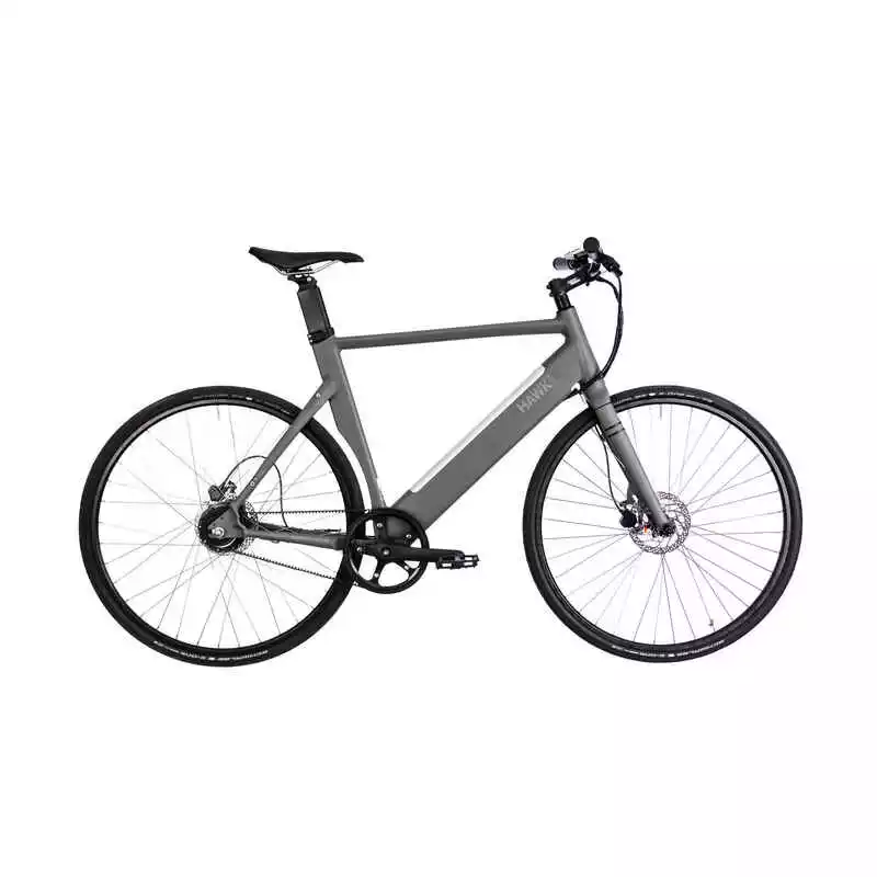 Das neue HAWK eUrban Speed-1 klingt nicht nur nach Geschwindigkeit, sondern setzt auch beim Design auf eine schnelle Formensprache. Der im Aero-Look profilierte, leichte Aluminiumrahmen stellt zusammen mit der Aero-Gabel die Basis dieses leichten E-Renners dar. Ein vollständig im Unterrohr integrierter 418 Wh Akku bietet bei bis zu 90 km Reichweite die nötige Unterstützung und unterstreicht durch seine Platzierung das dezente Erscheinungsbild. Die Laufräder mit schmaler 1.25 Zoll Bereifung machen das Bike unglaublich schnell, lassen sich jedoch jederzeit über die hydraulischen Tektro Scheibenbremsen dosiert und sicher kontrolieren. Als besonderes Highlight besitzt das eUrban Speed-1 einen GATES Riemeantrieb, der im Vergleich zu einem klassischen Kettensystem durch große Wartungsarmut und Langelebigkeit glänzt. Das HAWK eUrban Speed-1 vereint gekonnt Design, Funktion und Wartungsarmut und begeistert all jene, die ein schnelles Pedelec für den Alltag suchen.