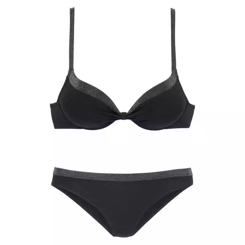 Modisch up to date: Push-up-Bikini von Jette, kreiert von der Designerin Jette Joop. Top und Hose mit metallisierten Glitzerparts. Top mit eingearbeiteten Verstärkungen und verstellbaren Trägern. Elastisches Material.