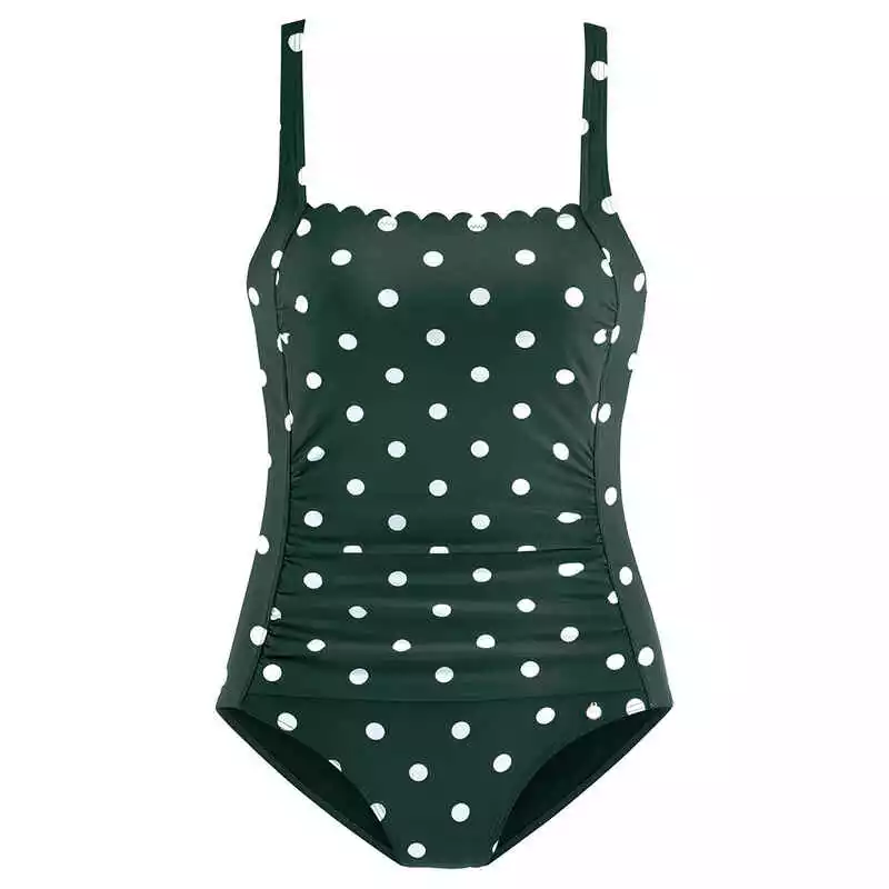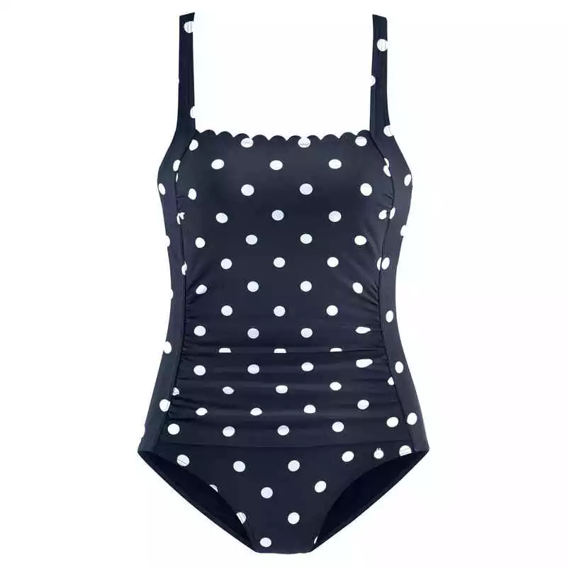 Modischer Badeanzug von Lascana mit Muschelkante und Allovermuster. Integrierte Softcups mit Unterbrustgummi. Miedereinsatz vorn. Träger sind verstellbar. Softe Microfaser.