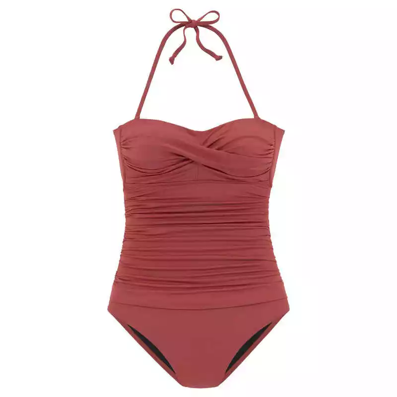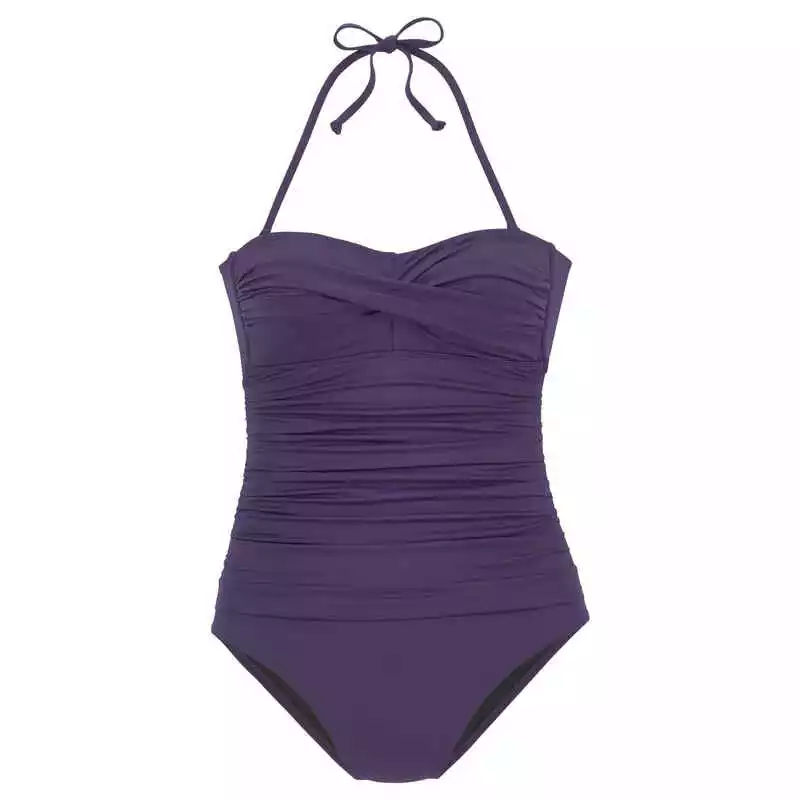 Eleganter Bandeau-Badeanzug von Lascana. Abnehmbare Träger, im Nacken zu binden. Integrierte Softcups und Silikonstreifen am Ausschnitt sorgen für Halt. Raffungen und dezente Unifarbe. Softe Microfaser.