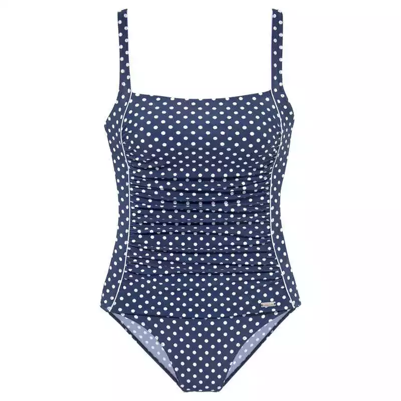 Im süßen Pünktchendesign. Mit verstellbaren Trägern. Eingearbeitete Softcups, Unterbrustgummi und Shaping-Einsatz vorn für eine traumhafte Strandfigur.
