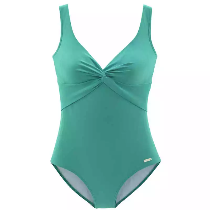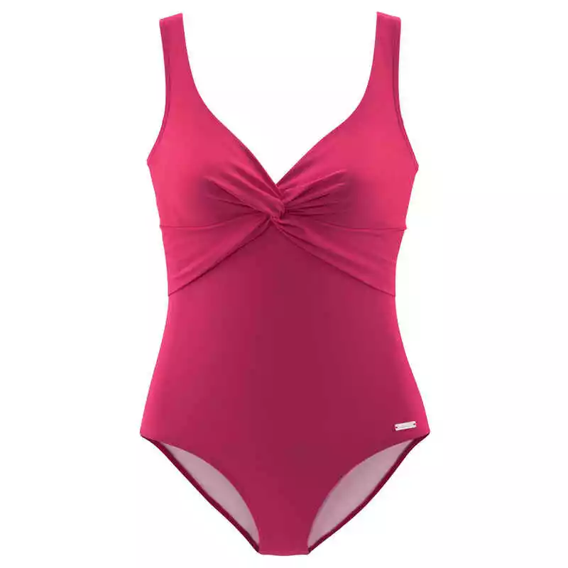 In modischer Optik mit Raffungen und Knoten-Effekt im Brustbereich. 2 Formen in je 4 Farben. Mit eingearbeiteten Softcups und Shaping- Einsatz vorn. In Rot und Petrol hinten gefüttert.