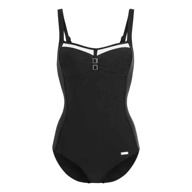 Stilvoller Badeanzug von Lascana im Marine-Design. Raffiniert: Vordermieder schmälert optisch. Integrierte Softcups. Träger verstellbar. Verzierungen im Brustbereich. Angenehmes Material.