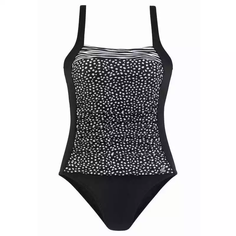 Badeanzug von Lascna mit modernem Druck. Mit integrierten Softcups, Unterbrustgummi und Shaping-Einsatz vorn. Praktisch verstellbare Träger. Obermaterial: 80% Polyamid, 20% Elasthan LYCRA® XTRA LIFE™. Miedereinsatz: 82% Polyamid, 18% Elasthan. Futter: 100% Polyester.