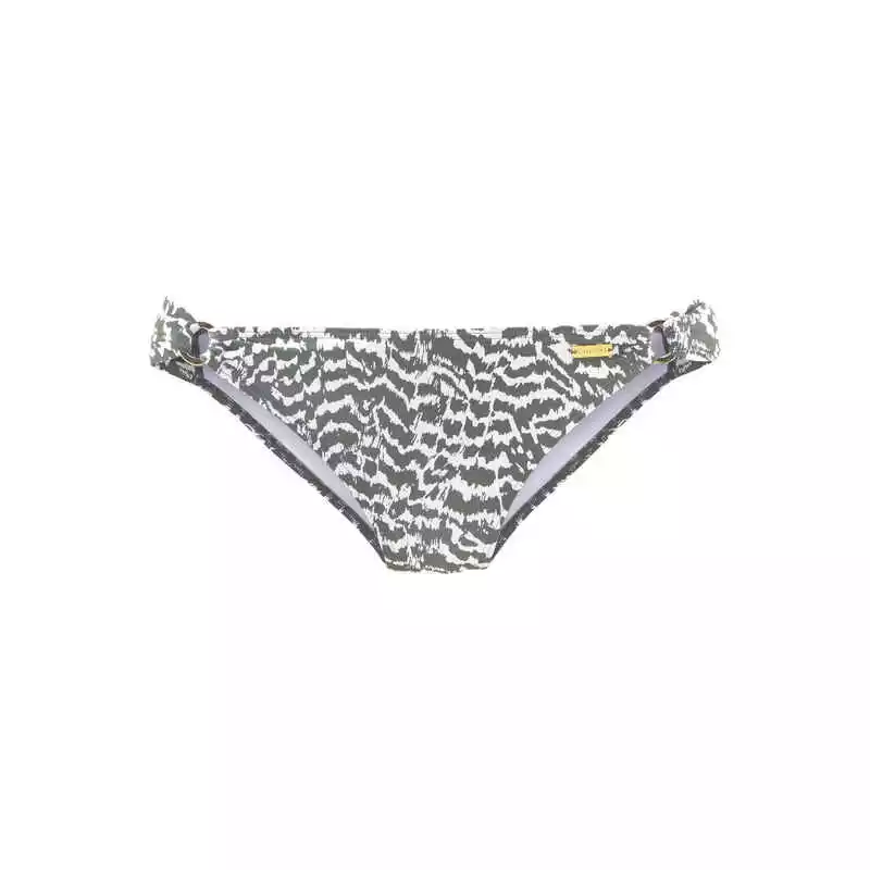 Bikinihose von Lascana. Mit abstraktem Alloverprint. Metallisch glänzende Ringe seitlich. Kleines Metallemblem. Mix-Kini-Prinzip. Weiche Microfaserqualität.