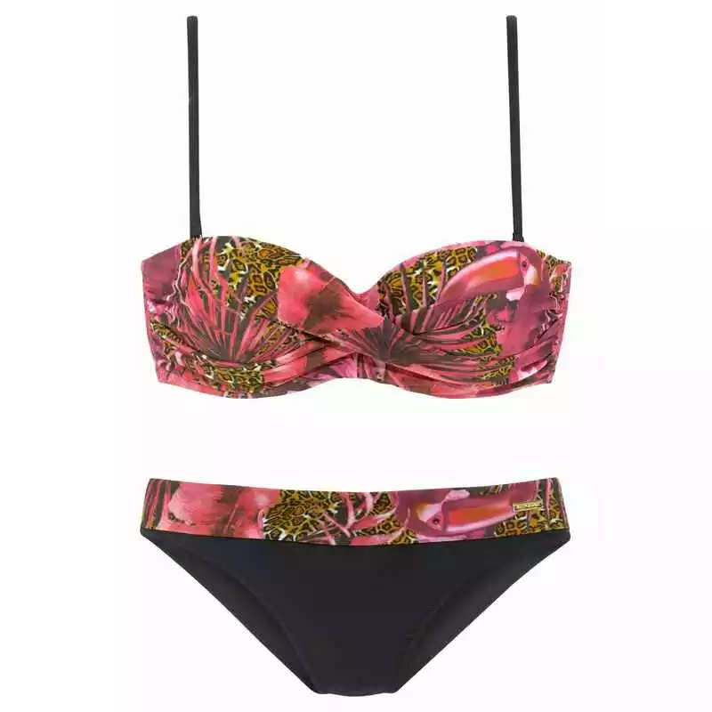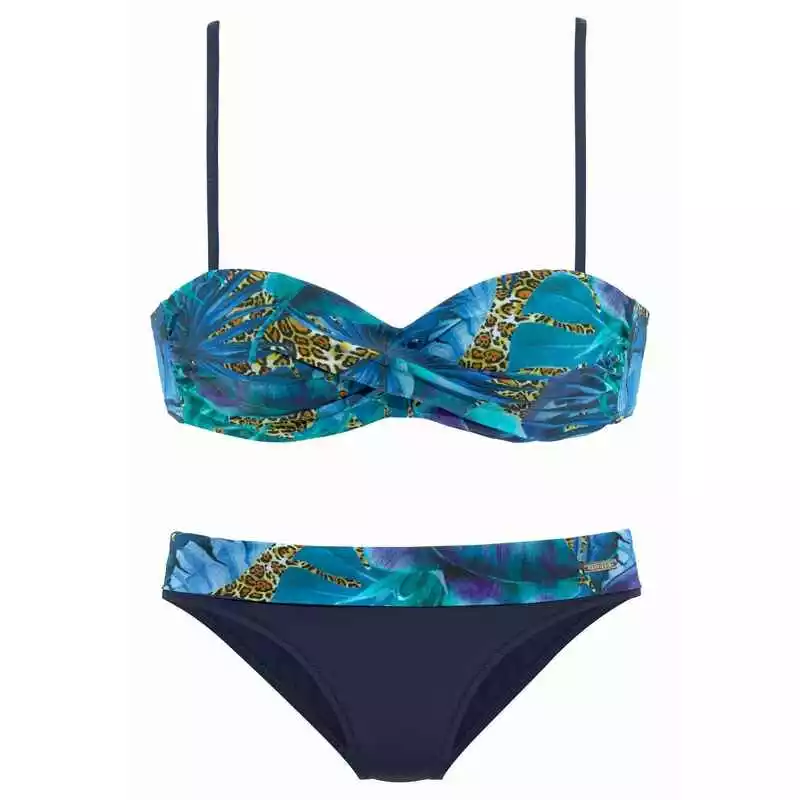 Bügel-Bandeau-Bikini in Dschungel-Optik. Wattierte Cups und seitlichen Stäbchen. Abnehm und verstellbare Träger. Obermaterial: 80% Polyamid, 20% Elasthan LYCRA® XTRA LIFE. Futter: 100% Polyamid