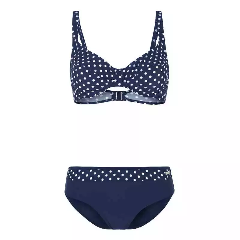 Im süßen Pünktchendesign. Mit verstellbaren Träger. Miedereinsatz am Cup. Vorn leicht gefüttert. Die Bikinihose ist seitlich extra breit geschnitten.