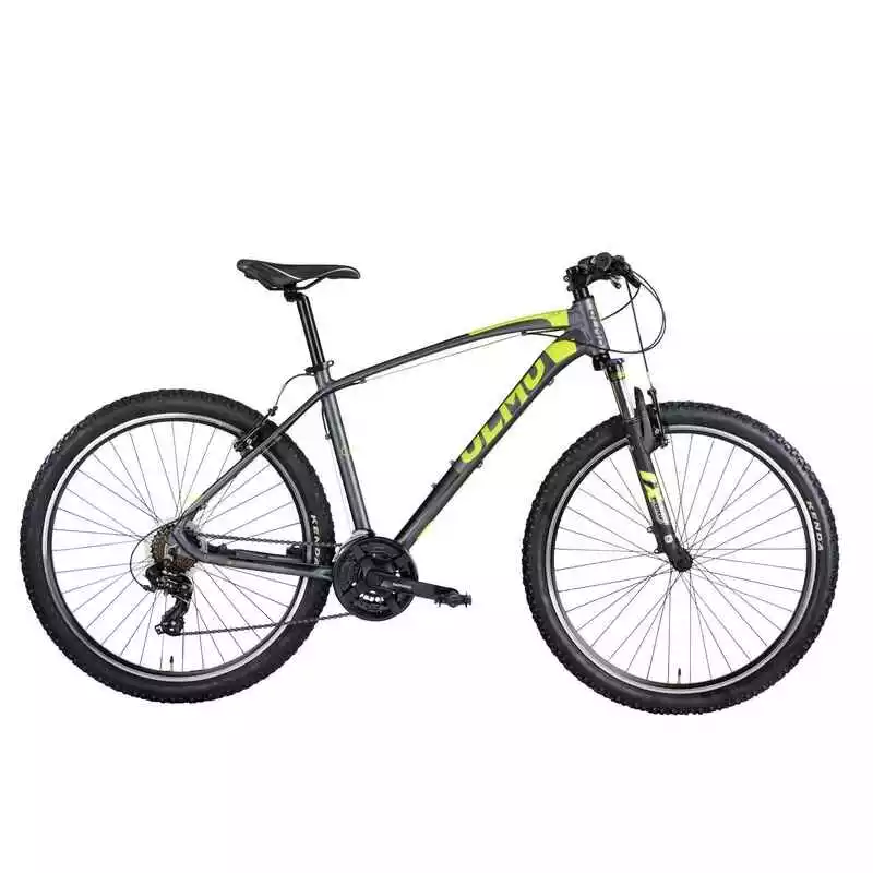 Ausgefeilte Technik und hochwertige Komponenten machen dieses 27,5 Zoll Mountainbike zum absoluten Bestseller der GIOVI – Serie von OLMO. Es überzeugt nicht nur durch die hochwertige Ausstattung, sondern auch durch die sportliche Optik. Dank der neuen Farbgebung hebt es sich deutlich von den klassisch Mountainbikes ab. Aufgrund des stabilen Rahmens und der ausgefeilte Rahmengeometrie ist das Fahrrad optimal für eine ausgedehnte Tour abseits der Straßen. Die hochwertige 21-Gang Kettenschaltung bringt jeden Fahrradbegeisterten zügig und sicher ans Ziel und sorgt für einen ungebändigen Fahrspaß. Die robusten V-Bremsen sorgen für eine optimale Bremsleistung, selbst bei nassem Untergrund oder unebenen Gelände und die Federgabel sowie der bequeme Sattel für einen angenehmen Fahrkomfort.