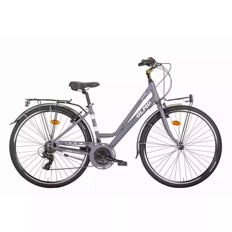 Perfekt für den Weg zur Arbeit oder auch für längere Touren, das OLMO Trekkingfahrrad BORGO überzeugt nicht nur durch seine hochwertigen Komponenten, sondern auch durch die schicke und zeitlose Optik. Die dezente Farbgeschaltung des leichten Aluminiumrahmens wirkt in Kombination mit den farblich abgestimmten Bauteilen besonders edel. Dank der 21-Gang Kettenschaltung von Shimano kommt man immer zügig und komfortabel ans Ziel. Die helle LED-Beleuchtung sorgt für gute Sichtbarkeit auch in der Dunkelheit und die robusten V-Brakes für eine optimale Bremsleistung, selbst bei nassem Untergrund oder unebenen Gelände.