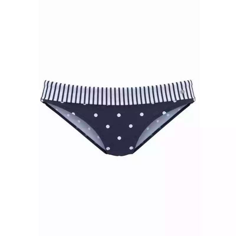 Bikini-Hose mit Umschlagbund von S.Oliver. Mustermix mit Punkten und Streifen. Obermaterial: 80% Polyamid, 20% Elasthan. Futter: 100% Polyamid
