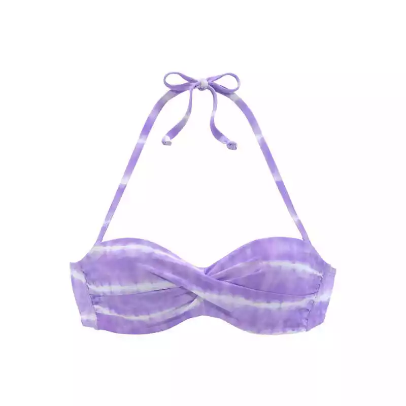 Bügelbandeautop von s.Oliver. Mit Alloverprint im Batik-Look. Jedes Teil ein Unikat. Herausnehmbare Kissen bei Cup A und B. Abnehmbare Neckholderträger. Mix-Kini-Prinzip. Aus weicher Microfaser.