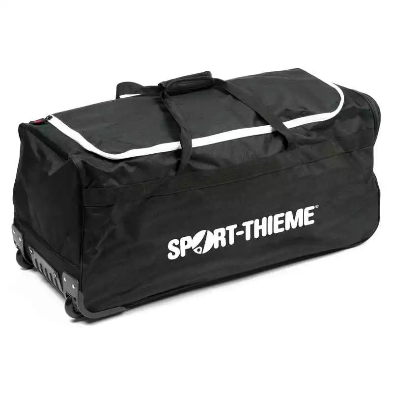 Viel Platz: 110 l XL-Stauraum / Großes, u-förmiges Hauptfach mit Reißverschluss / Transportrollen für Trolley-Funktion / ÜBERZEUGEN SIE SICH SELBST: Wir von Sport-Thieme legen den größten Wert auf die hohe Qualität der bei uns angebotenen Produkte. Das was Sie von diesen Produkten erwarten können, können Sie auch von unserem Service erwarten. Sollten Sie Fragen haben oder etwas nicht passen, können Sie uns jederzeit erreichen (deutsches Unternehmen und deutscher Kundenservice). Wir finden immer eine Lösung. / Sport-Thieme Sporttasche Basic: alles sicher verstaut Die Sport-Thieme Sporttasche Basic bietet mit 110 l jede Menge Stauraum für Ihre Team-Ausrüstung. Dank der Trolley-Funktionen können Sie zudem selbst schwerere Ladungen komfortabel transportieren. Längere Wegstrecken lassen sich so ebenfalls mühelos zurücklegen. Neben den Rollen verfügt die Tasche auch über 2 stabile, zusammenklettbare Tragegurte. In dem großen, aufklappbaren, u-förmigen Hauptfach finden auch sperrige Dinge Platz. Kleinere Gegenstände lassen sich in dem zusätzlichen Seitenfach separat verstauen. Hier befindet sich zudem ein beschreibbares Namensfeld. Beide Fächer lassen sich schnell und einfach über einen Reißverschluss öffnen und schließen. Produktdetails: Material: 80 % Polyester, 10 % TPE, 10 % Polypropylen / Maße (LxBxH): 800x375x375 mm / Gewicht: 1,8 kg / Farbe: Schwarz-Weiß /