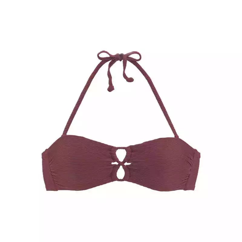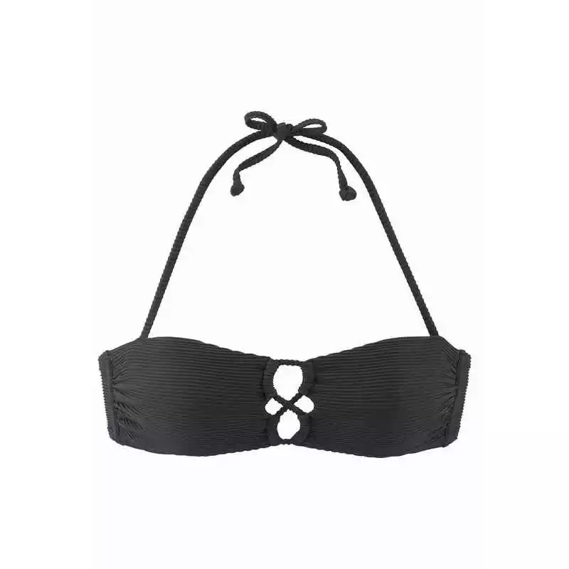 Aus modischer Strukturware. Mit modischer Zierschnürung vorn am Top. Herausnehmbare Cups und seitliche Stäbchen für einen besseren Halt. Im Rücken zu schließen. Abnehmbare Träger, im Nacken zu binden.