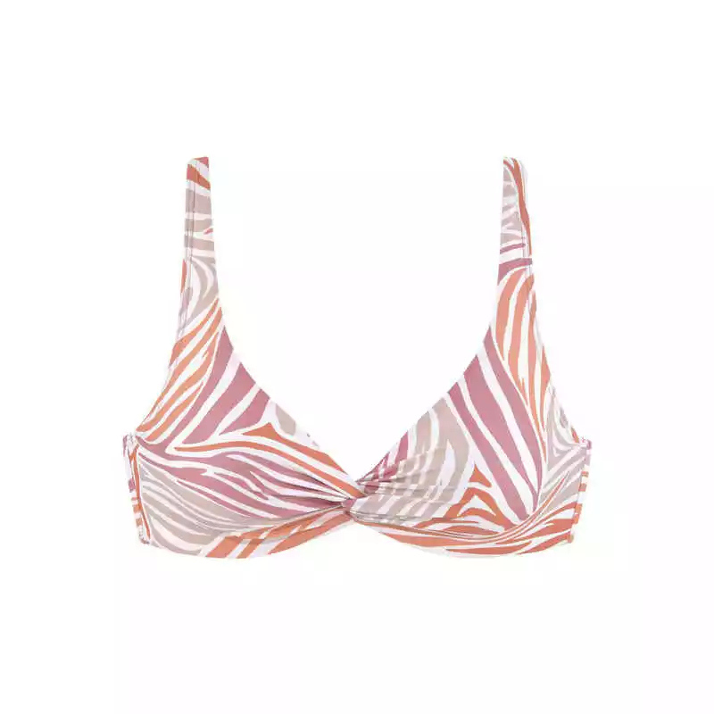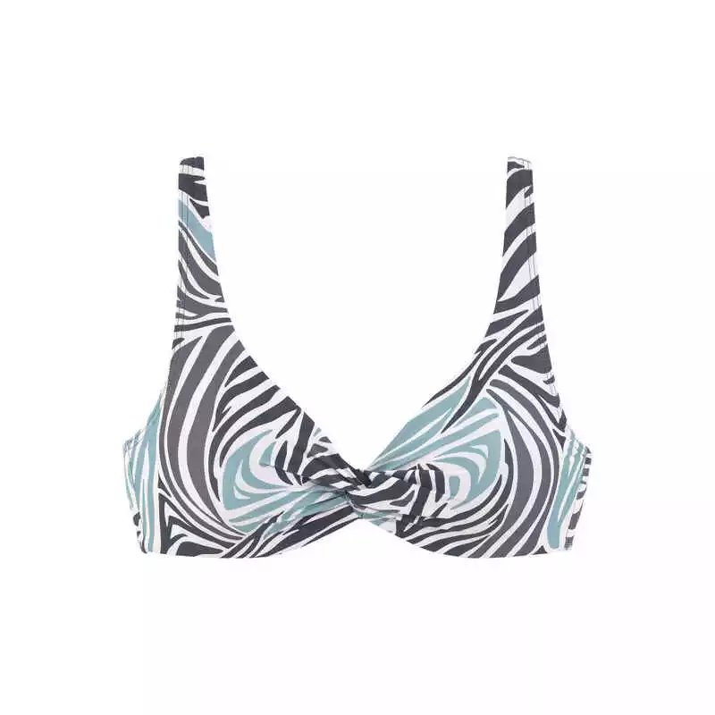 Obermaterial: 84% Polyamid, 16% Elasthan. Futter: 92% Polyester, 8% Elasthan. Softe Microfaser. Sommerlicher Animalprint. Top mit seitlichen Stäbchen und verstellbaren Trägern. Hinten zu binden.