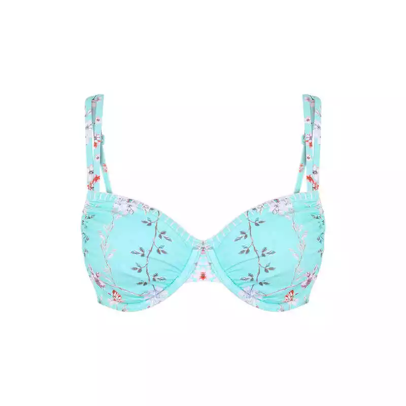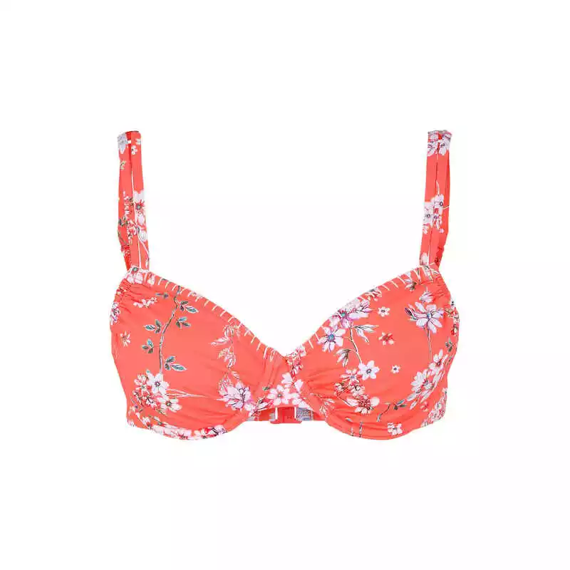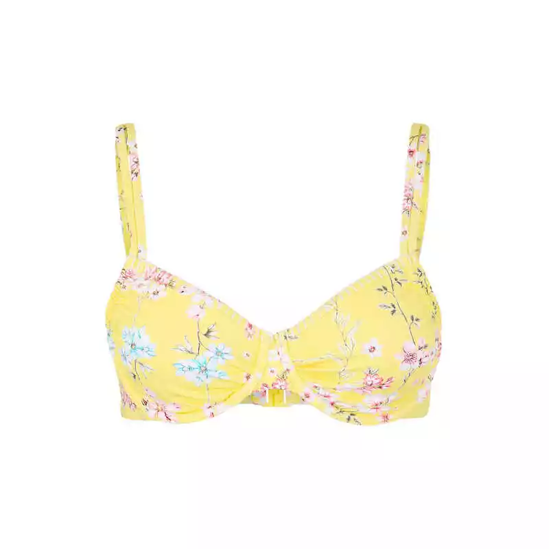 Bügel-Top von Sunseeker mit kontrastfarbener Hakelbordüre. Mit verstellbaren Trägern und die Cups können seitlich reguliert werden. Weiche Microfaser-Qualität. Obermaterial: 84% Polyamid, 16% Elasthan. Futter: 100% Polyamid