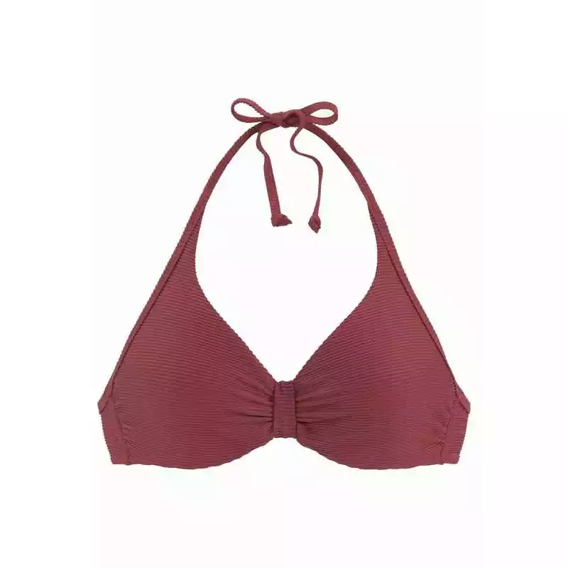 Aus modischer Strukturware. Mit seitlichen Stäbchen für einen perfekten Halt. Im Nacken zu binden und im Rücken zu schließen.