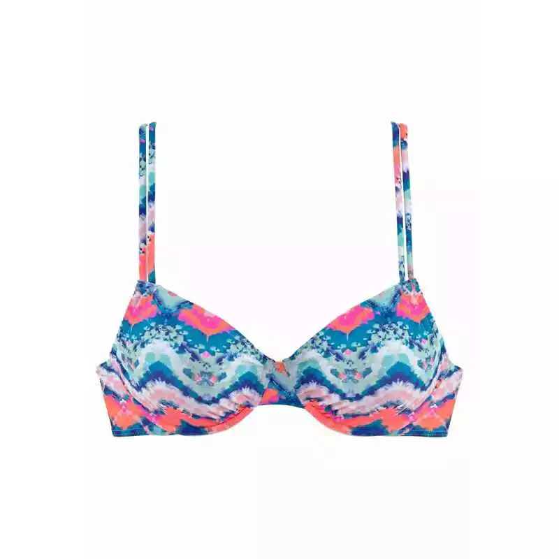Bügel-Bikini-Top mit herausnehmbaren Cups und verstellbaren Trägern. Das Top kann seitlich gerafft werden.