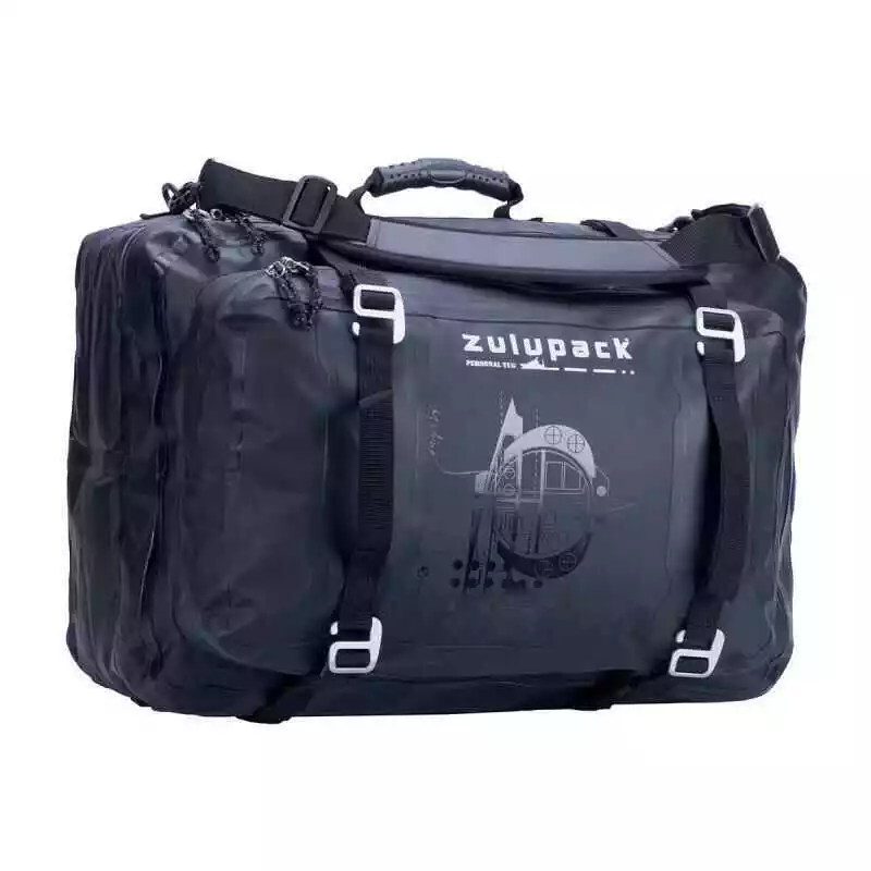 Wasserdichte Tasche, die für Weltenbummler in ein Handgepäckstück umgewandelt werden kann. Die große Öffnung erleichtert das Verstauen Ihrer Sachen. Das gepolsterte Hauptfach bietet Schutz vor Stößen, verfügt über 4 Riemen, um die Kleidung zu fixieren, einen Trenner und eine elastische Lycra-Tasche.
